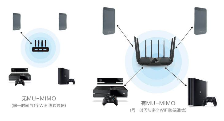 无线连接方面,不同于市面上大部分采用第一代11AC技术的双频路由器,G7采用的是第二代11AC WAVE2技术,实现MU-MIMO,即多用户多入多出。相比路由器同一时刻只能和一个用户通信的SU-MIMO,MU-MIMO在无线性能上实现了质的飞跃,其最大的特点是路由器能在同一时刻跟多个用户同时通信,而无需像SU-MIMO那样排队等待。因此在多用户的情况下,MU-MIMO的优势得到了充分的体现,每个用户都能均衡地获取网络资源,用户能明显感觉到网络速度的提升。