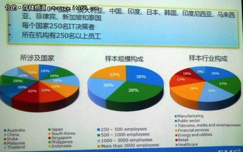这份调查报告是EMC公司委托独立研究公司Vanson Bourne进行,针对包括澳大利亚、中国、印度、日本等10个亚太地区的国家的2500多名IT决策者进行调研后所得出的结果,受访机构所拥有的员工均在250名以上,涵盖了制造、公共事业单位、电信媒体和娱乐、