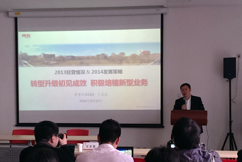 3月17日,用友软件股份有限公司发布2013年财报。董事长兼CEO王文京向媒体介绍了用友2013年的经营情况和2014年的发展策略。