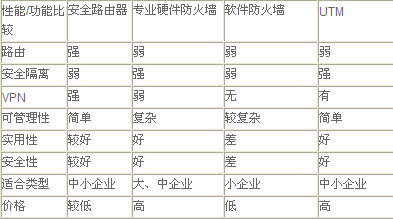 总之,从性能和功能上比较来看,专业防火墙由于性能好、工作稳定,而且低端防火墙价格也在几万元;UTM产品功能强大,但性能不是那么太好,而且价格再加上软件升级的费用估计费用要比低端防火墙的价格高;安全路由器从价格上来说,几千元就可以完全搞定,相比防火墙和UTM,性价比较高,再加上VPN以及具有防火墙的某些安全功能,因此比较适合中小企业使用。 安全路由器在中小企业中应用 当前市场上的安全路由器主要是用于中小用户的安全接入产品。用户对路由器的性能要求不是很高,在 安全路由器的出现对于网络的整体结构来讲并没有产生非常大的变动,由于安全路由器是一种边缘接入路由器,所以对整个网络尤其是主干网络没有多大的影响。对于中小用户来讲,新建的网络就可以采购安全路由器,因为它集几种重要功能于一体,从管理成本的角度来说,肯定比管理多个产品要简单很多。当然,产品的价格比普通路由器会有所提高,但仍然可以接受。 从实际的市场与应用效果来看,安全路由器受到中小型企业的喜爱, 是因为安全路由器可以隐藏公司内部的网络拓扑结构图,同时还可以加密需要传输的数据,从而做到即使传输的数据在公网上给其它用户拦截到时,他们也不能通过IP包来获取公司内部的网络IP地址及了解到内部的网络拓扑结构图,经过加密的数据,没有专门的解密工具一般的用户是不可能知道所传输的数据包的内容。 因此相对于中小企业而言,由于资金预算有限,购买独立的防火墙不但成本高昂,而且设定管理又很复杂;对于中小企业及大型企业的分支机构来说,他们没有足够的资金和人员维护配置硬件防火墙;因此采用适合的安全路由器,由于价格较低,可以一次解决网络安全的问题,又能达到网络升级,为未来建置VPN及VoIP进行准备。 (IT实验室) 来源:计世网