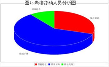“怎么核心部门商业事业部、投资发展部和对外协作部的关键岗位人员考核成绩都下降了不少呢?核心部门绩效下滑,难怪山东分公司整体业绩不佳了。” 王总再一点击“商业事务部”,系统便穿透到此部门,自动生成了关键岗位人员的考核变动人员分析图(图4)及其变动人员考核明细表(略)。