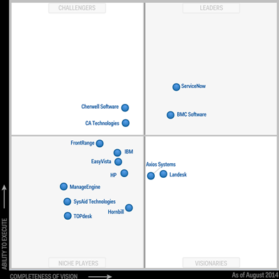 全球领先的实时IT管理解决方案提供商,卓豪ManageEngine宣布旗下ITIL/ITSM解决方案-ServiceDesk Plus继2013年之后,再次被知名分析机构Gartner列入2014 年IT服务支持管理工具魔力象限报告。这份报告基于愿景完整性和执行能力对14家供应商进行了评估。