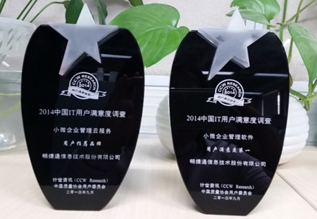 在2014中国IT用户满意度高端研讨会上,畅捷通信息技术股份有限公司凭借在小型微型企业管理服务领域的突出贡献,荣膺小微企业管理云服务推荐品牌,同时“畅捷通T+“还荣获小微企业管理软件领域用户满意度第一殊荣。