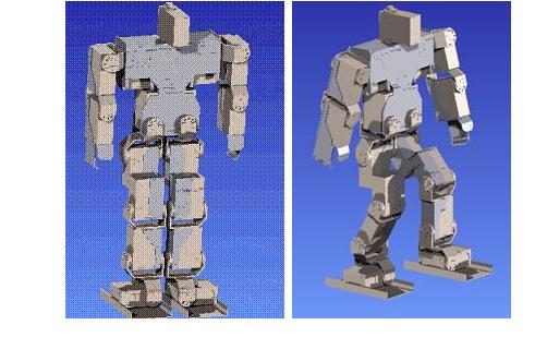 康豆小子机器人 华东师范大学第二附属中学 胡开本 指导老师:祖权 我的这部作品完成的是一个自动化程度很高的仿人机器人。 机器人由各个零部件分别制作后合成,完成整体模型,再加上行走的动作。依照次序将部件连接起来,排除重合,进行紧密连接。通过静止时原形,以一定的比例放大后,再进行组合。使行走过程分步进行,从每步中提取一些点,再加上一些数据的改进,完成全部的动作,以保持流畅。利用CAXA实体设计的三维球装配功能,装配组合机器人模型,根据不同动作马达处于不同的位置和运转情况,做成数据表格。在指定的时间,不同的马达的运动组合,构成整个机器人的动作,模拟机器人动作进行动画设计。