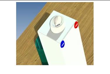 新型特色饮水机 上海市嘉定一中 刘敏浩 指导老师:严海平 我设计的作品是一台可以自动装水的多功能饮水机。 特色1:有自动机械手装置,这种饮水机不仅可以在我们没力气的时候帮上忙,特别是对于本身就没什么力量的幼儿,老人和残疾等来说,就省去了每次装水时的麻烦。 特色2:有自动调温系统,我设计了一种可以调节温度的旋钮,外盘在三角箭头的数字显示现在的水温,而那盘在三角箭头下的数字则为希望的水温。蓝色旋钮代表冷水,最底温度为冰点,红色旋钮代表温水,最高温度为沸点。 特色3:节水装置,下图为饮水机中的净水器,因为每次倒水时都会有些漏出来,都倒掉有些可惜,所以我在接水槽下面又接上了净水器,可以时每一滴水得到充分利用。