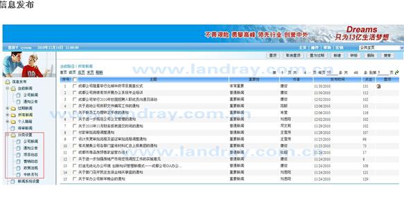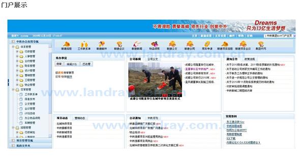 客户背景: 中国铁建是中国乃至全球最具实力、最具规模的特大型综合建设集团之一, 2010年《财富》“世界 500 强企业”排名第 133 位,“全球 225 家最大承包商”排名第 1位,“中国企业 500 强”排名第 8位,是中国最大的工程承包商,也是中国最大的海外工程承包商。业务涵盖工程承包、勘察设计咨询、工业制造、房地产开发、物流与物资贸易及资本运营,经营范围遍及除台湾以外的全国 31 个省(市)、自治区、香港、澳门特别行政区以及世界 60 多个国家和地区。 关键需求: 1、实现电子化流程审批功能; 2、BAM、会议发布、办公用品管理及知识的管理; 3、实现KK内部会话,待办提示、邮件收发功能。 项目目标: Ø 建设中铁地产企业门户基础 Ø 通过EKP系统提高全集团各部门及员工的办公效率、整合各类办公资源、提升中铁地产整体管理水平 Ø 建立中铁地产内部行政办公、电子邮件、信息共享、公文流转、知识管理等功能,实现办公自动化、网络化管理,提高办公效率和资源共享程度 Ø 建立项目进度管控平台 解决方案: Ø 通过EKP系统来实现管理层对公司员工的事务管理提高工作流程审批效率。 Ø 通过邮件系统集成来实现数据集成展现及EKP信息邮递。 Ø 通过BAM模块实现中铁地产项目进度管控