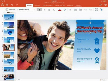 推出针对iPad的触摸版Office,显然是微软改变的第一步。显然,我们也希望触摸版本的Office能够尽快扩展到Windows及其他流行平台上。虽然需要Office 365服务费,但iPad版Office是完全基于触摸屏设计的本地Office应用,与此前的Office Mobile云办公应用完全不同,所以我们也可以期待Android版本在本次Build 2014大会上发布。