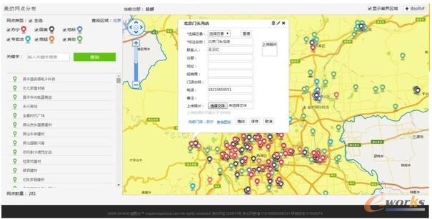 将美的自建仓库、网点、第三方中转网点等位置及相关业务信息(仓库面积、使用率、空仓情况、网点订单量等)快速标注在地图上。