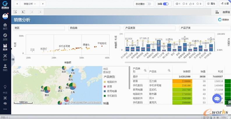 企业应用BI进行销售业务分析 为了将ERP中大量的企业经营数据价值最大化发挥出来,为企业管理提供决策指导,企业选择一款合适的BI软件显得尤为重要。上海亦策软件科技有限公司是国内较早探索大数据,积极助力中国企业数字化转型的科技公司,其研发的亦策观数台BI凭借其关联引擎、增强智能等核心技术,成为帮助企业深入洞悉数据的下一代可视化分析平台。 亦策观数台BI将自助式BI的灵活性提升至一个新的层次,包括自助服务可视化、指导式分析应用和仪表盘、嵌入式分析和报告等,为企业应用大数据提供了一个有效的工具,目前在制造、零售、生物医药、物流运输等领域都有着广泛的应用。 亦策观数台BI可通过对ERP中留存的数据进行抽取、挖掘、管理、分析等,将数据转化成为对决策过程有重大意义的信息,帮助企业实现从数据到信息、从信息到知识、从知识到利润的转化。通过亦策观数台BI的合理运用,ERP系统中的海量数据可以被充分挖掘,并进行多维度的分析、横纵向的剖析和筛选,将大量原始的数据转化成有价值的商业信息,不断地为企业策略的调整提供数据支撑,也让ERP系统更好地服务于企业。