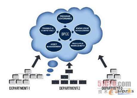 随着企业级BPM的实施,重点转移到了管理,标准化,优化与可伸缩性上和BPM的好处的落实上。为了满足这些需要,业务流程能力中心(business process competency center (BPCC))提供一个集中式的信息库--并在云中承载它,让他更容易访问(图A)。由于共享基础设施和公共环境的本质,协作和共享的能力将进一步提升。