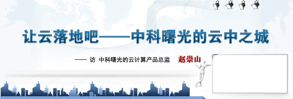 赵总:这个曙光公司在内部的话,大概在2007年开始就关注信息化的技术,在云计算其他的技术来讲,曙光一直很关注。从2007年开始我们已经组成了一个团队,做了一个内部虚拟化平台的一个产品。当然曙光对于云计算的话,实际上因为它认为这种服务的模式能够更好的整合曙光的各条产品线,这个时候能够适合信息化的系统,能够提升曙光的产品的竞争力。这个时候包括各条产品线,包括研发,包括各条产品线都在2009年到2010年的时候以云计算这么一个形式来进行了一定的整合。