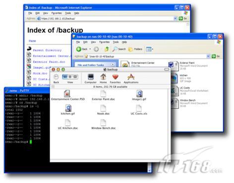 如果您想具有镜像备份功能,您可以选择RAID 1级。RAID 1级可以保证当一个磁盘损坏时数据存取切换到未损坏的磁盘。如果您有3块或更多的磁盘,并想寻求速度、容量和性能的平衡时您应该选择RAID 5级。 热备磁盘 如果您的应用环境需要减少磁盘损坏所造成的时间影响,您可以保留一个磁盘作为热备用。让我们假定一块磁盘损坏的情况,一般情况下,您会尽可能快的更换掉这块坏磁盘以便您的ReadyNAS恢复到冗余保护的状态,然而在您更换掉坏磁盘之前,ReadyNAS会保持一种降级的状态,意思是一旦再有磁盘损坏您将丢失您的数据,有可能您的两块磁盘在同一时间损坏,虽然这种几率很小但仍然有可能发生。使用标准的磁盘热备,当磁盘损坏的同时,它上面的数据会被重建到热备磁盘上,同时ReadyNAS仍旧会保持冗余保护状态。 后台 RAID 同步 在使用磁卷时不必等待同步过程完成。同步过程将在后台完成,您可以在磁卷创建后立即使用。没有后台同步功能,您可能必须要等待数小时能可以使用磁卷。 企业级RAID才具有的智能 "同步恢复"功能 在RAID初始化或奇偶同步过程中如果遇到意外中断,会花费大量额外时间从头开始。现在“同步恢复”功能可以使您从中断处继续进行,以减少您的数据失去保护的时间。 生命支持模式避免2个磁盘共同失败 使用NETGEAR的RAID生命支持模式,从磁卷中同时移除2块磁盘的话,并不意味磁卷已经死亡,只需关闭ReadyNAS并重新安装好磁盘,并重新开机,您的磁卷会从中断处恢复。我们不建议您在其它RAID系统上尝试这种操作。 磁盘失败时自动关机 RAIDiator被设计成保持ReadyNAS在磁盘损坏时仍旧可用。但是使用RAIDiator 2您可以选择在磁盘损坏事件发生时自动关闭ReadyNAS。这项功能可以防止发生在未更换第一块损坏的磁盘时又发生第二块磁盘损坏。 关于磁盘配额 使用磁盘配额您可以限制共享区的大小以防止磁盘被填满。根据选择的安全级别,您可以限制共享区的容量,或者每用户的空间容量或者每组的容量。 关于安全模式 RAIDiator支持三种模式。第一种是”共享“模式,安全设置是基于共享区的。意思是谁有共享区的密码即可以存取共享区。当然您也可以选择不设置密码,这样任何人都可以存取共享区。这种模式比较适合于家庭或小企业的办公环境。 第二种模式是”用户“模式,在这种模式下,可能存在很多用户,可以给这些用户分组,例如市场部一组、技术部一组。这种模式需要帐号和密码先进行登录才可以存取ReadyNAS。登录后即可存取用户具有权限的共享区。这个模式需要使用FrontView对帐号和密码进行一定的配置工作。 最后一种模式叫“域用户”。这个模式与第二种模式非常相似,然而与之不同的是对用户的帐号密码的管理是由Windows域控制器来负责的(通常是域控制器或活动目录服务器)。在企业环境,经常使用域控制器来减少维护成本。 支持的的客户端 如果一台NAS只能支持Windows会怎么样? NAS的特点就在于能在多种用户间共享数据。RAIDiator支持Windows, plus Mac, Unix, Linux以及其它任何具有浏览器或FTP客户端的系统。