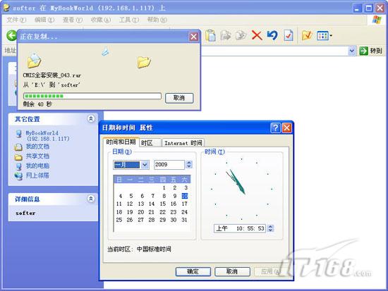 笔者针对mybookworld进行了测试,日常工作很稳定,风扇转速不高,噪音不大,只是开机时间久了风扇会忽然转几下来降低温度。在读写方面笔者直接通过UNC访问存储设备,复制230MB的数据,大概用时为50秒,平均下来每秒4.4MB,和传统100M相比略低,这是因为mybookworld自身的CPU频率比较低的缘故,不过有些玩家已经针对CPU进行了超频处理,最终速度达到了每秒6MB多。(如图16)