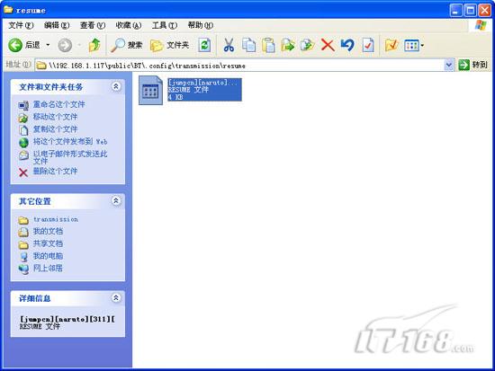 小提示: 要想提高mybookworld下载速度我们可以到路由器中指定DMZ地址为mybookworld的地址,这样就能够有效提高传输速度。不过需要提醒一点的是mybookworld的默认BT管理程序工作效率比较低,总体下载速度不如在计算机上直接执行。 第五步:下载的文件被存放在mybookworld的public目录下的bt\.config\transmission\resume目录下,我们可以访问该目录获取下载的资源。(如图20)