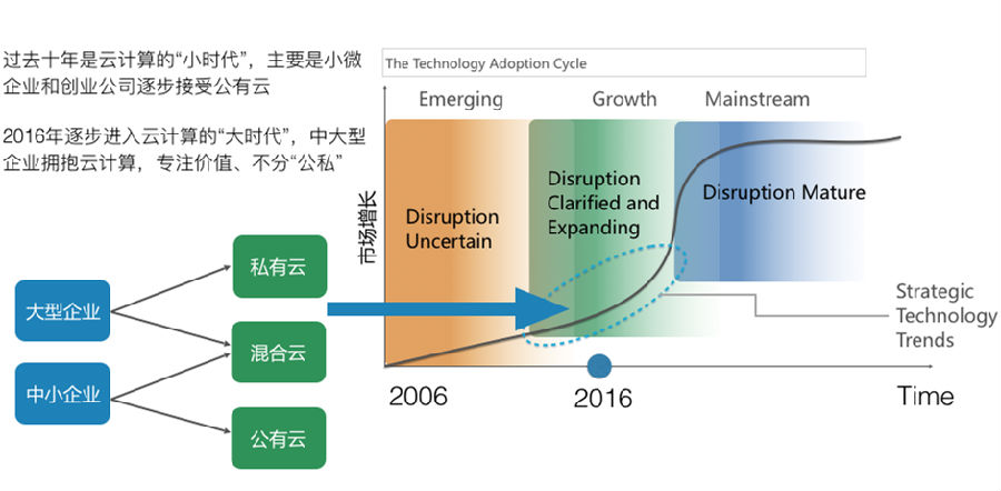 2006年,谷歌第一次提出了“云计算”的概念。10年来,我们解决了云计算“有和无”的问题,现在将要解决的是云计算“有和优”的问题。换句话说,在云计算诞生10年之际,它完成了从0到1的小时代,即将迎来从1到N的大时代,两者都将引发新一轮的市场变局。 历史总是惊人的相似。 互联网,如果说虚拟世界的自产自销是互联网的小时代,那么互联网+将虚拟和现实相连、协同、变革、创新,则是互联网的大时代。 大数据,如果说商业智能、分析预测是基于既定模型的小时代,那么人工智能则将带来基于机器学习的大时代,未来机器人、智能驾驶都将以此为核心。 移动互联,如果说智能手机是移动互联网的小时代,那么可穿戴智能设备则开启了无限想象空间的移动大时代。 那么,怎样来区分云计算大时代的开启,从而前瞻新一轮变局的爆发?