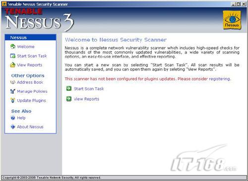 图1、AFA部署架构 AFA支持的防火墙厂商包括思科、Checkpoint和Juniper等业界知名厂商。 2、漏洞扫描 安全专家表示,IT管理者还必须重视防火墙本身的安全性。 这个任务的目的包括判断防火墙是否一个弱安全性密码,是否存在已知的安全漏洞。 可供我们使用的安全工具有开源的Nessus,Nessus是事实上的漏洞扫描器标准。实际上,许多商业软件在他们的产品中使用了Nessus引擎,并且几乎每一个主要的安全硬件供应商都支持Nessus的扫描结果。 Nessus目前有2个版本,一个开源的Nessus 2.2.x版本,还有一个Nessus 3虽然不再是开源的,但却是免费的,而且新版的Nessus 3.03已经开始支持Windows平台,大大降低了它的使用门槛。