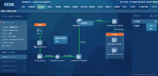 图:华师部署锐捷WIS无线智能服务平台 n第四、清除“黑代理”,用服务质量提升开网用户数 在华师石牌校区,通过核心交换机旁路部署锐捷的集中防代理检测设备,准确检测出网络中存在的代理上网用户行为,并将数据同步给锐捷RG-SAM认证计费系统,进而实现多种处置策略。这套方案不仅适用于现有802.1X认证以及Web认证,同样适用PPPOE认证,可在更广泛的网络应用场景中杜绝用户代理行为,保护实名制网络中账户与IP的有效对应关系。另外,这套方案将运维人员工作量大幅降低,其工作方向也从防范“黑代理”转到进一步提升用网质量上来,其效果大大提升用户的开网数量。 n第五、关注业务质量和用户体验,智能综合运维平台实现全网“一体化”管理 锐捷网络的RIIL综合智能运维系统,是华师极简校园网的重要组成部分,从业务维度和用户维度出发,实现了对华南师范大学有线设备以及无线设备的统一管理和状态呈现。RIIL的“一张图”即可呈现校园网运行状况,包括出口流量状态、出口是否畅通、各个区域流量及连通性、核心连通性、认证状态、无线访问体验等。利用端到端跟踪功能,网络中心老师能够快速了解用户业务访问的具体状况,实现快速排障和定位问题,确保教学业务稳定运行。