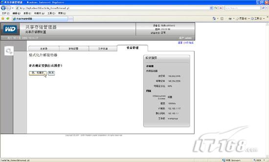 第九步:建立完协同工作方式后我们不要着急点“设备管理”->“格式化新内部驱动器”,因为默认的选项来格式化容易出现问题,我们需要通过浏览器直接输入http://mybookworld/auth/dm_formatExternal.pl这个地址来格式化新内部驱动器,这个内部驱动器就是第二块硬盘。(如图14)