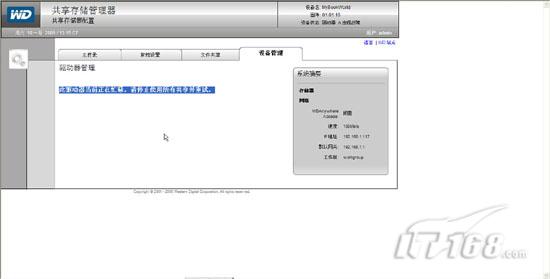 网友问答:如何为家用存储添加外部硬盘网友提问: IT168的专家你们好,我是一名家庭用户,最近购买了一套家用存储设备,希望通过他来实现数据保护与数据共享,我购买的这款产品是WD的mybookworld II型,该设备最大支持两块SATA接口的大容量硬盘,不过在实际使用中我不知道该如何添加第二块硬盘。按照你们频道的文章已经在第一块硬盘上安装了系统也可以顺利启动,但是连接第二块硬盘却没有任何容量的扩展,真正想实现RAID 1来保护数据也不知道从何处下手,希望专家指导一下,我已经购买了两块硬盘希望他们可以协同工作。 IT168解答: 很多读者在浏览了我们之前的廉价家用存储系统安装与应用篇后都购买了WD的mybookworld II型存储产品,该设备支持两块硬盘协同工作,不过第二块硬盘的安装略微复杂,需要我们发扬DIY精神,下面笔者就针对这位读者所提出的问题进行讲解,介绍如何为家用存储系统添加外部硬盘。 (1)外观辨别可支持硬盘数: 对于WD的mybookworld来说一共有两种型号,I型与II型,前者比较瘦只支持一块硬盘,工作时单硬盘运行;后者比较宽支持两块SATA接口的大容量硬盘,工作时两块硬盘可以建立RAID 1或者第二块硬盘作为第一块硬盘容量的扩展增加设备总体容量。(如图1)