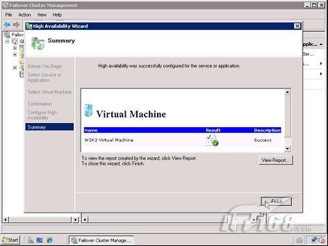 步骤6:选择之前新创建的虚拟机,确认后即可开始建立高可用性,建立完成后按Finish就大功告成了。(图6)