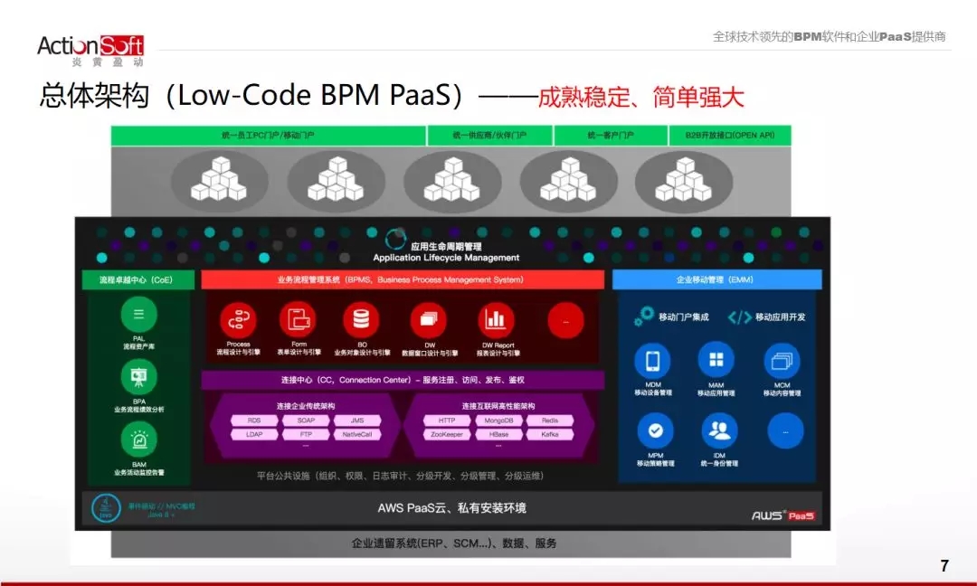 图为:联合汽车电子CIO赵超 此外,炎黄盈动上海事业部高级顾问黄志全讲述如何构建数字化企业转型流程大脑。从该解决方案的总体构架上看,左边是流程数据中心,提供流程梳理工具,帮助企业实现规划梳理;中间是落地平台,快速帮助企业、高校实现业务需求;右边是移动化的整体解决方案,可以帮助高校和企业实现云部署等等一些新技术。同时,这三方面也是炎黄盈动建设高校和企业数字化转型流程大脑的三大过程:流程梳理、流程执行和流程分析。 【在kaiyun体育官方人口 微信回复:08102,即可获取黄志全演讲PPT《如何构建数字化企业转型流程大脑》】