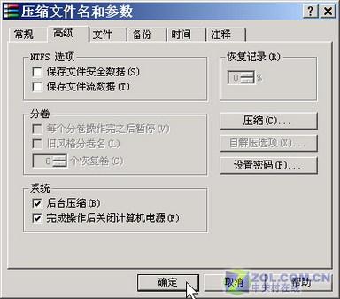 单击“确定”按钮返回“压缩文件名和配置”窗口,按下“确定”按钮备份文件。