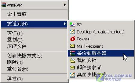 以后,要备份数据,只要选中欲备份的数据,右击,选择“发送到”→“备份到服务器”即可快速把选中的文件备份到\\data\databak\databak.rar文件中(如图1)。