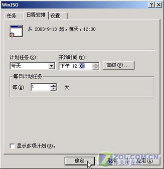 双击“备份Work”图标,单击“日程安排”标签,单击“任务计划”下拉列表框,从中选择“每天”,而“开始时间”设置为自己的时间。如图6,我们设置为中午12:00吃饭时,再单击“设置”标签,取消选中“电源管理”下的“如果计算机使用电池来运行(如图6)。