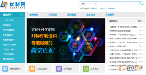 武汉材料保护研究所 Umade优制网(www.Umade.com.cn )工业服务分享平台,以制造服务和服务型制造为核心的制造资源分享平台,为企业提供制造资源、制造能力和技术服务能力的展示、推广与业务承接机会,帮助企业匹配合格服务商,实现制造企业间资源的优化与共享,让闲置资源通过服务产生价值。 在优制网平台上,服务方企业可将富余或闲置的制造能力、制造资源和专业服务能力在平台上进行展示和分享,并通过平台承接其他企业的业务需求,充分发挥闲置资源的能力和价值。需求方企业可以在平台上发布加工、生产和专业服务等业务需求,并通过专业的服务搜索引擎实现服务方企业的服务类别、服务能力和服务资源的匹配,解决专业化的外协外包需求。优制网不仅可以帮助制造企业提高资源的利用价值,还可为大量的中小企业和创新型企业提供“双创”的支撑,让更多创新型企业解决加工制造和技术服务的难题。